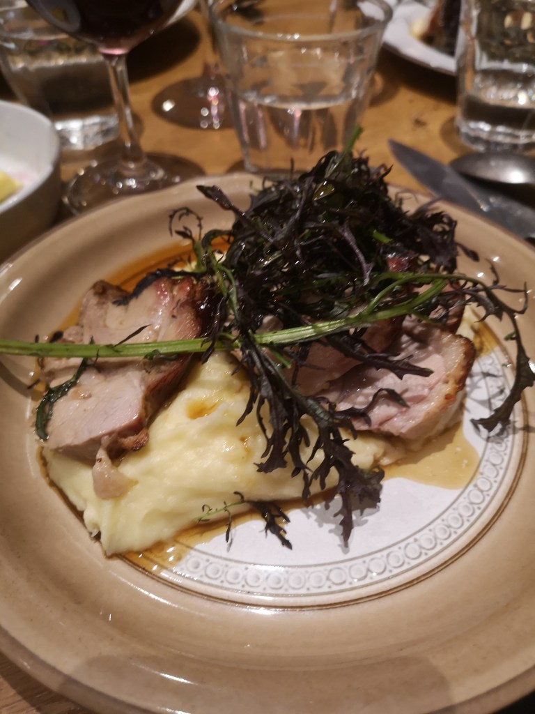 Côté carte, tout tient en quelques lignes sur les ardoises dispatchées ici et là. Les intitulés sont simples mais on sent déjà une cuisine canaille avec ce soir-là des ris de veau, des huîtres ou encore une tarte tatin tradi. Avec mes amies, nous nous sommes laissées tenter par l’oeuf parfait et sa tombée de champignons sauvages, le parmentier et son jus de viande bien rond, mais aussi le cochon de lait et sa purée maison. Les assiettes sont très bien cuisinées, vont droit au but et ont du caractère… C’est champêtre et réconfortant, bref, tout ce qu’on aime ! Pour la soif, La Mirlitantouille propose une jolie carte de vins natures. Foncez !