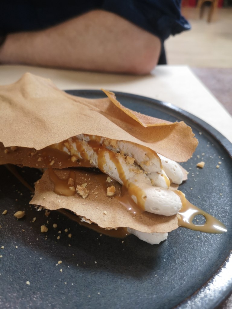 Côté dessert, mon coeur penche pour le millefeuille café, caramel, sarrasin et cacahuètes torréfiées, un intitulé qui peut paraître lourd et qui pourtant est d’une grande légèreté.