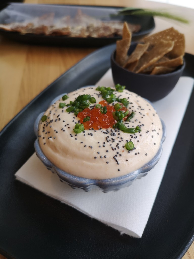 Si la vue sur la baie est un gros plus, la cuisine n’est pas en reste avec une carte simple et créative, axée autour des produits bretons. On commence par le réconfortant croque-andouille, une galette de sarrasin servie comme un croque-monsieur et généreusement garnie, mais aussi l’accra de tourteau ou encore le tarama d’oeufs de cabillaud fumés à la texture mousseuse, servi avec des chips de sarrasin.