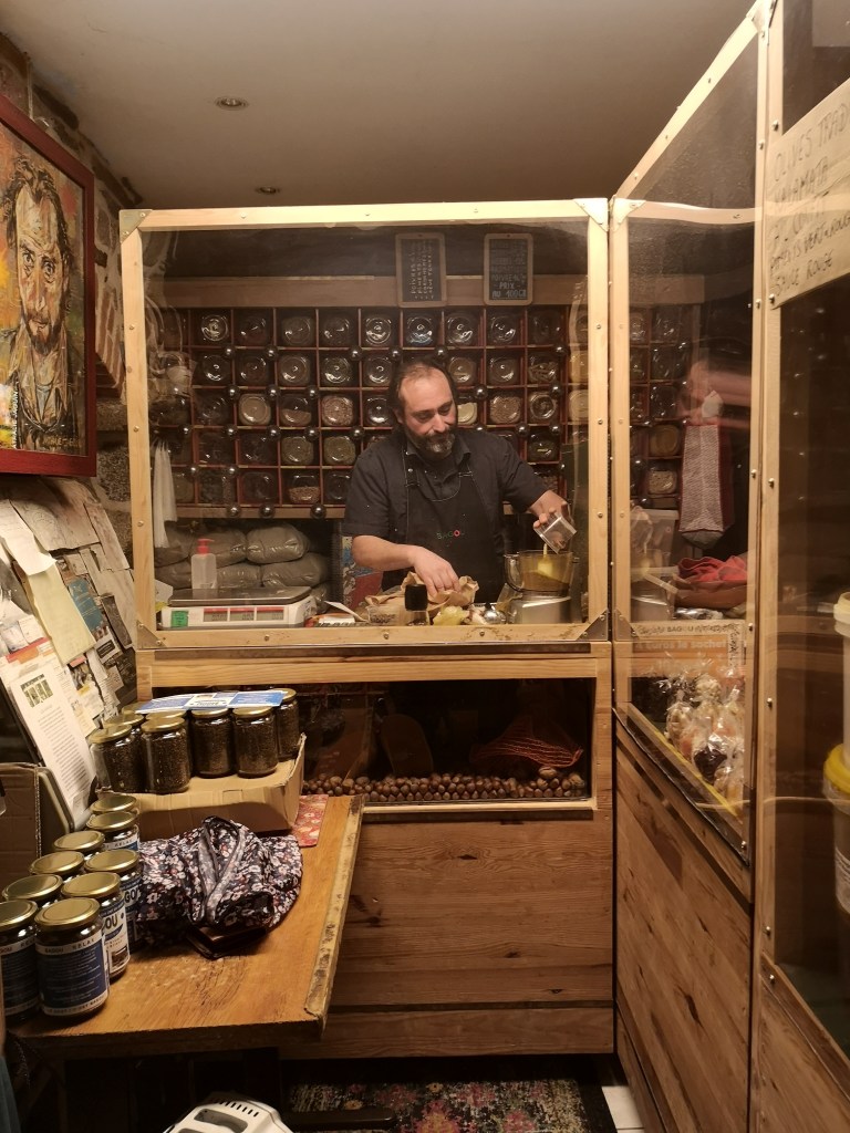 « En vendant des épices, j’ai l’impression de participer à votre bonheur, parce que les épices améliorent le goût et la digestion. Et quand t’es bien, bah t’es heureux », explique-t-il tout simplement. En fonction de vos goûts mais aussi de vos maux, Bagou pioche dans ses nombreux bocaux pour vous concocter un pot d’épices sur-mesure qui viendra relever la moindre poêlée de légumes. D’autres délices, comme des noix de cajou ou des amandes torréfiées, des fruits secs et quelques farines sont également disponibles à la vente.