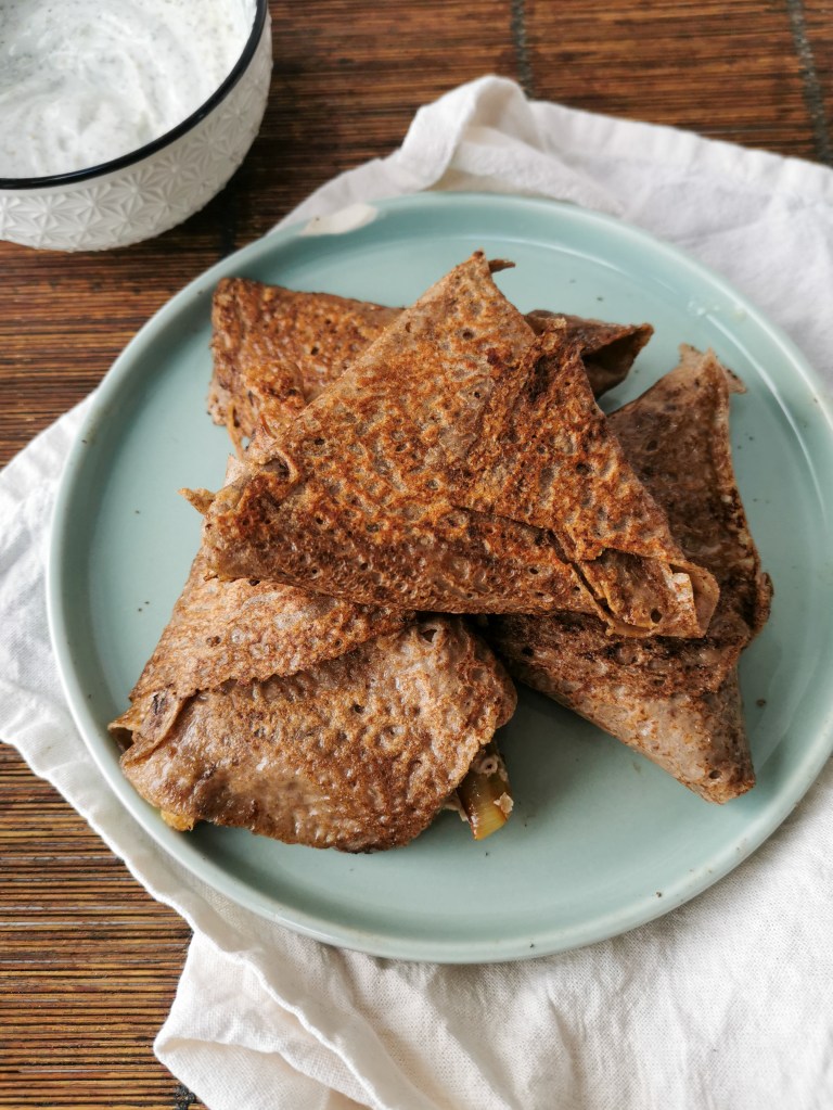 Vous avez forcément un super artisan près de chez vous qui confectionne de bonnes galettes. Moi, j’adore celles de Katell Lorre de La Petite Ferme d’Émeraude à Saint-Cast-le-Guildo 😋 et pour changer un peu de la complète, je vous propose une petite recette de galette façon Samossa aux poireaux, chèvre frais et confit d’oignons.