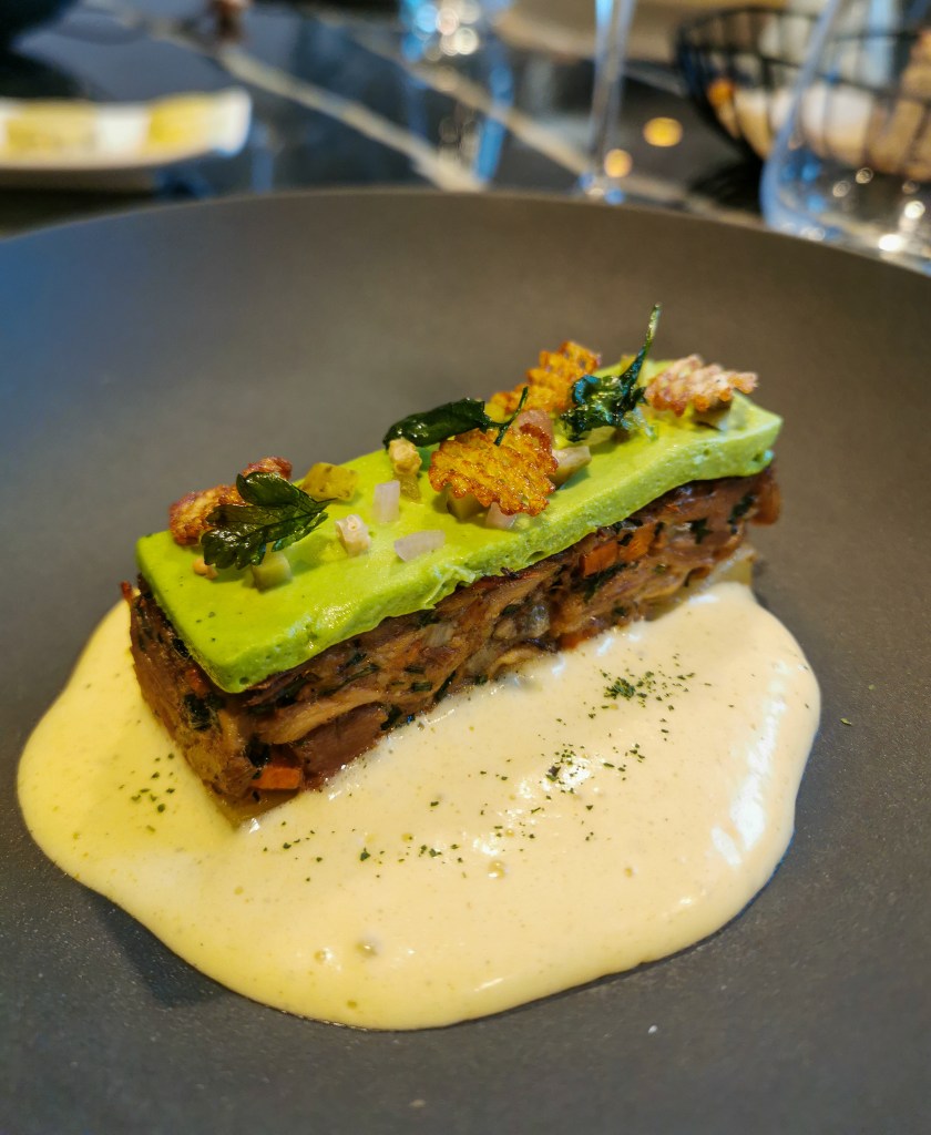 Parmi les plats marquants, on citera également le Pressé de porc bien confit et au goût intense, ou bien le Lieu jaune nacré en croûte d’herbes. Autre coup de cœur ? Le Suprême de pintade moelleux à souhait et sa garniture chou et topinambour. Tout est créatif, sans jamais en faire trop !