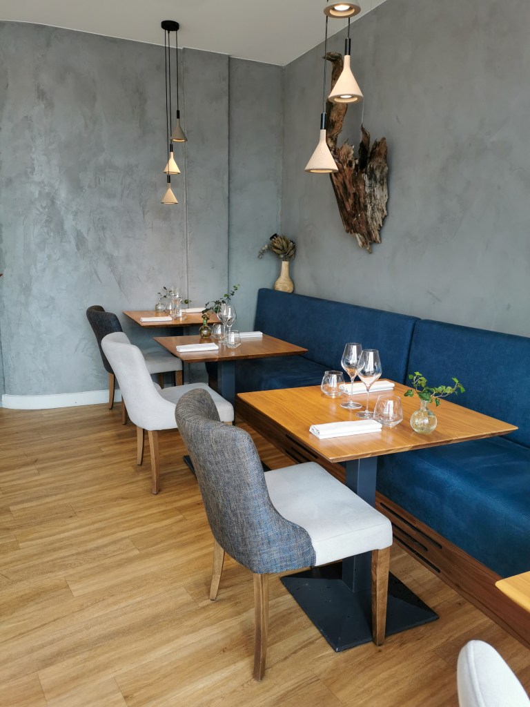 Sources porte bien son nom. Premièrement parce qu’il s’agit d’un retour aux sources pour Nicolas Le Tirrand. Originaire de Larmor-Plage, le chef a ouvert ce restaurant en août 2020 face au port sur le quai de la Bôve, à Lorient. Ancienne brasserie, l’adresse est devenue une jolie table aux tons minéraux, où les nuances de bleu et de gris côtoient les écorces de bois accrochées aux murs.