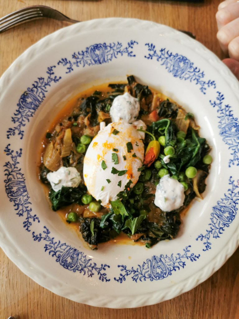 Le soir, la saucisse se déguste même à partager pour toute la tablée ! D’autres propositions comme la shakshuka verte, les poireaux brûlés aux agrumes et noisettes torréfiées ou encore le velouté d’asperges sont à la carte, qui change presque tous les jours !