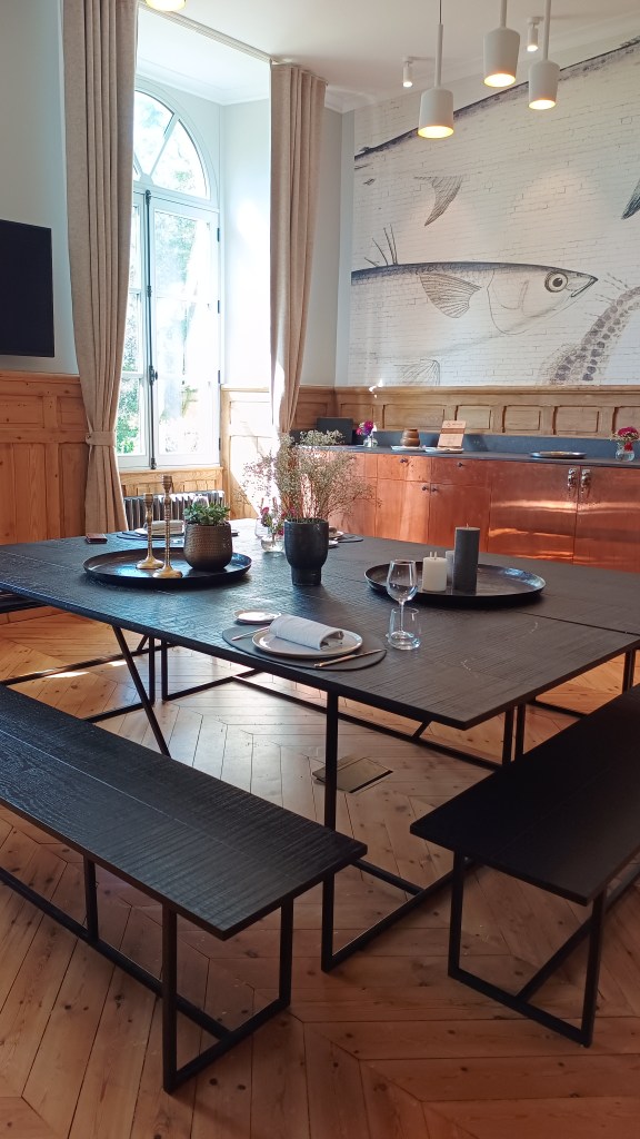 Aujourd’hui, c’est la nouvelle expérience immersive et conviviale La Table du Mezo qui retient toute notre attention. Sous la direction des chefs Kevin Gatin (passé chez Anne-Sophie Pic) et Gaëtan Pauvert (ancien chef du Ritz Paris), un dîner exclusif pour 12 convives (qui se connaissent ou non) est organisé au sein du château. Installée face à la cuisine ouverte, la table invite les clients à interagir directement avec les chefs, à découvrir les dernières préparations ou même à participer au dressage des assiettes, tout en savourant un excellent repas gastronomique empreint de délicatesse et de raffinement.