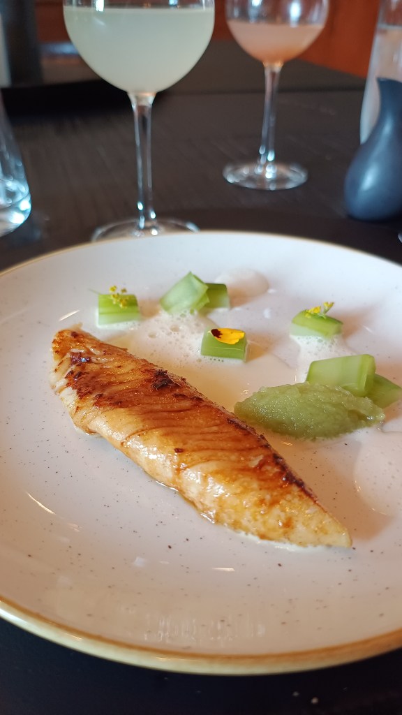 Le menu unique, qui change au gré des saisons, est adapté selon les allergies et régimes alimentaires des invités. En cette fin d’été, le menu offre un gaspacho de melon, des tomates marinées avec espuma de burrata, du Saint-Pierre laqué au soja, et un pigeon à la rhubarbe. Le tout se termine en douceur avec une panna cotta aux mirabelles. Le repas est accompagné d’un accord de vins, ou de créations sans alcool telles que des infusions originales et thés glacés.