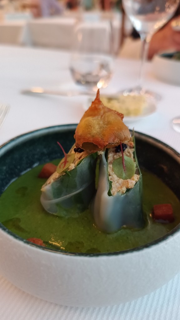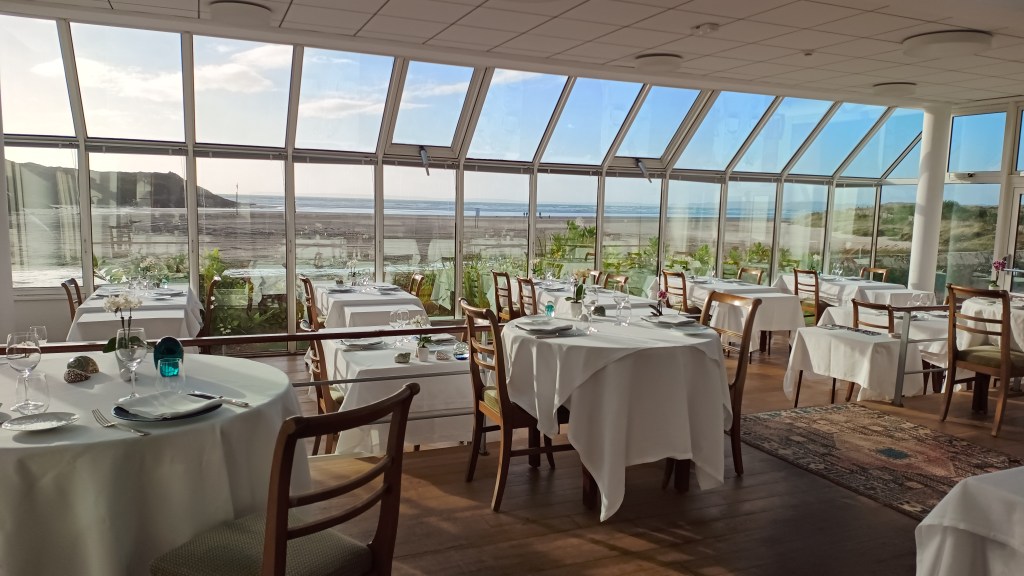 Côté restauration, le chef Yoann Noël propose une cuisine raffinée aux influences bretonnes. Installé dans une grande véranda lumineuse face à l’océan, le restaurant sublime les produits locaux comme les poissons et les fruits de mer, dans un cadre élégant et feutré.