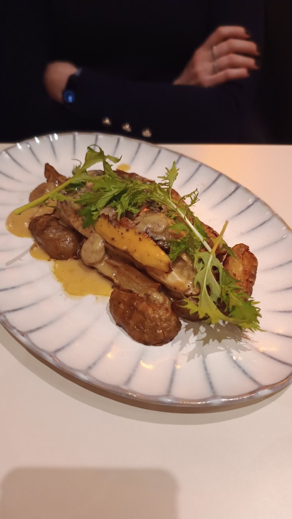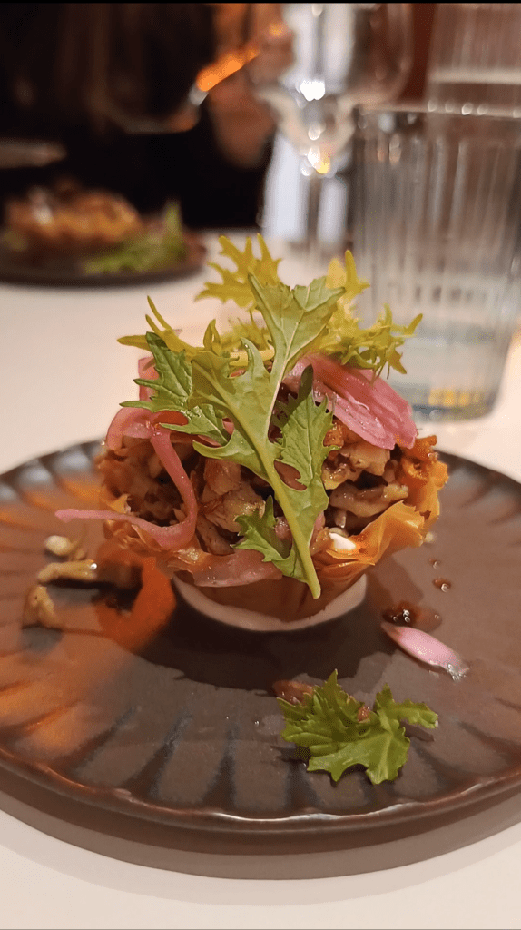 - Tartelette croustillante aux pleurotes grillés, sublimée par une sauce à l’ail et une huile au paprika fumé.