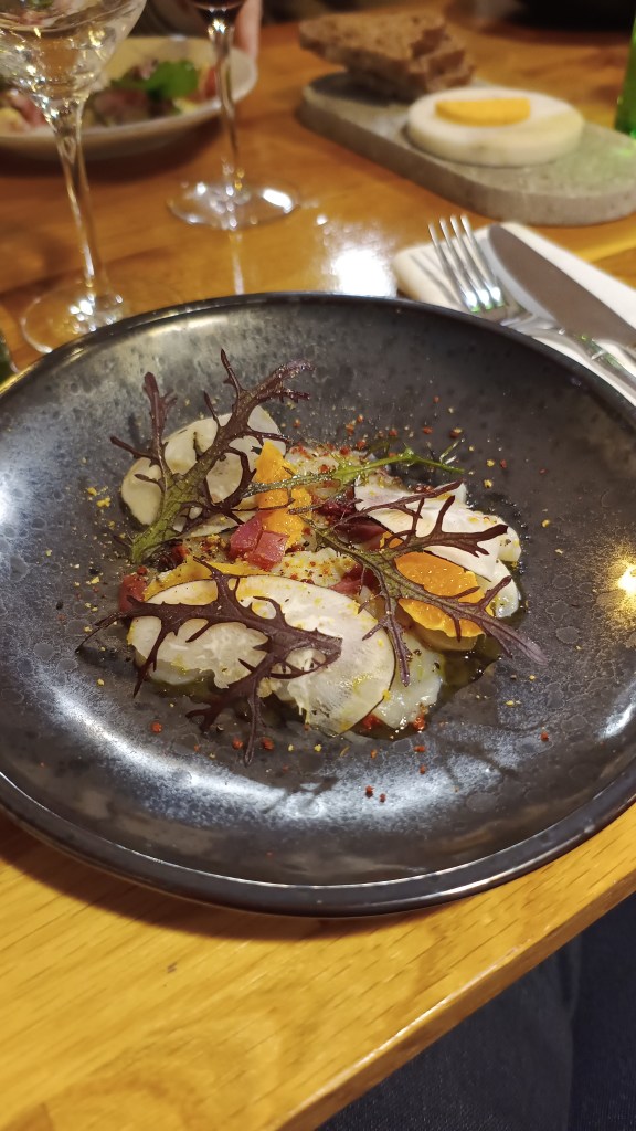 Parmi les créations marquantes, on retrouve le Ceviche de St-Jacques à la clémentine ou encore le Pastrami de cochon relevé d’une mayonnaise à l’estragon en entrée ; ou bien le Quasi de veau parfaitement rosé servi avec une mousseline de panais au café mais aussi le Mignon de porc au petit épeautre et champignons. Bon à savoir : une option végétarienne est toujours proposée en entrée mais aussi en plat, selon l’inspiration du chef.