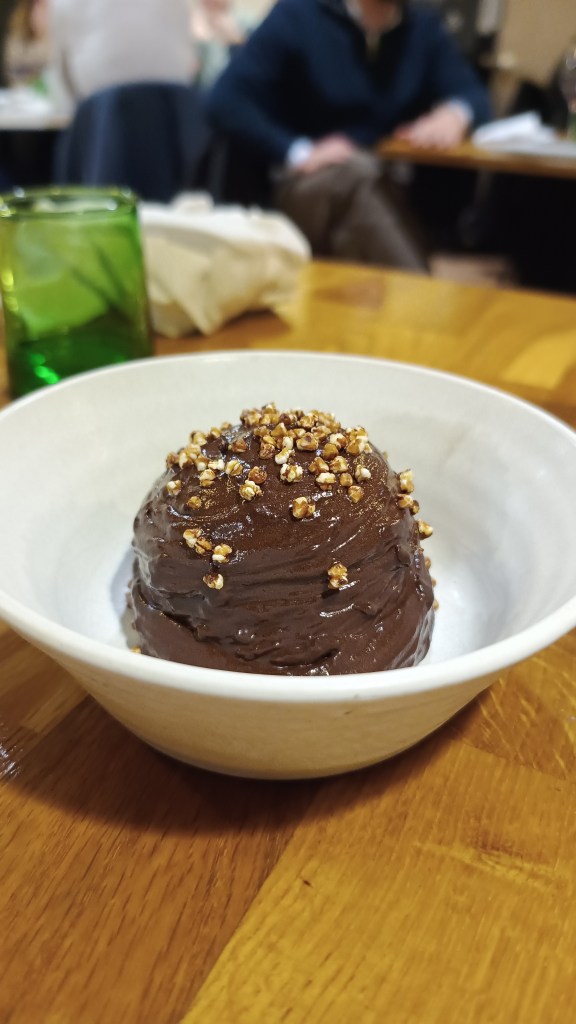 Côté dessert, les gourmands craqueront pour la mousse au chocolat tiède et son sorbet au sarrasin.