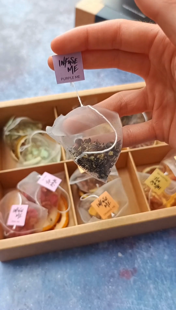 Le fonctionnement d’Infuse Me repose sur une idée aussi simple qu’ingénieuse : des sachets à infuser, semblables à des sachets de thé, qui permettent de préparer un cocktail en un clin d’œil. Il suffit de plonger un sachet dans 5 cl de gin ou de spiritueux sans alcool, puis d’ajouter du tonic ou de l’eau pétillante. Les ingrédients naturels, principalement des fleurs et des épices, apportent non seulement des saveurs intenses, mais aussi des couleurs vibrantes et séduisantes à chaque verre.