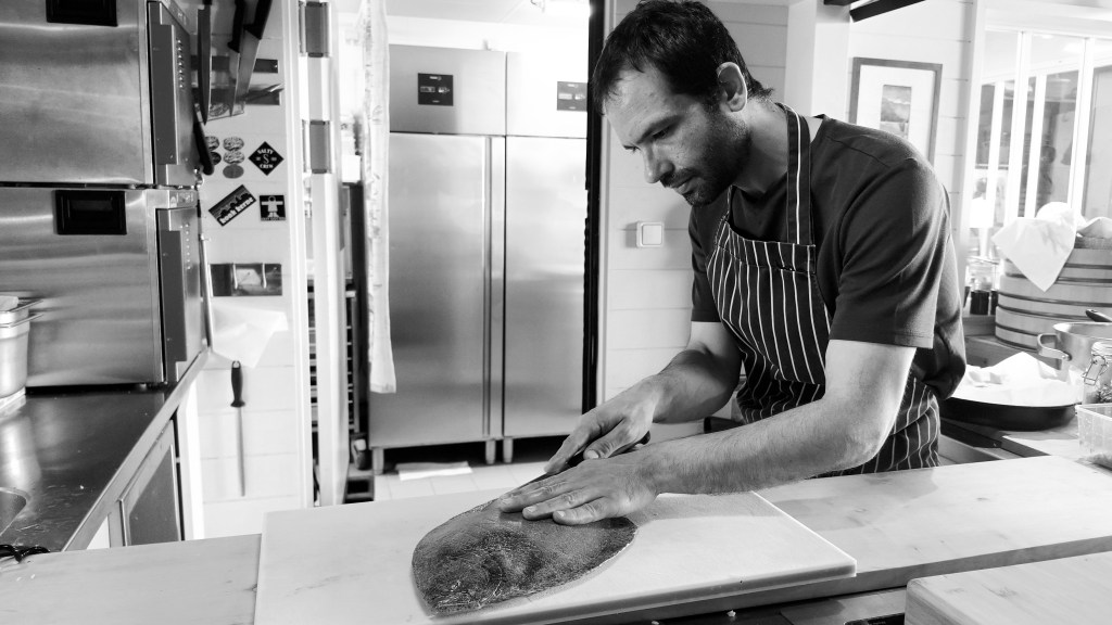 Originaire de Savoie, Romain Paillet a affûté ses couteaux auprès de Yoann Conte à Veyrier-du-Lac et de William Ledeuil à Paris. Installé désormais en Bretagne, il a ouvert L’Atelier du Nord en décembre 2021, dans l’ancien bâtiment de la criée, face à la ville close de Concarneau. Le lieu, sobre et contemporain, offre une immersion totale : la cuisine ouverte trône au centre de la salle, invitant les convives à observer le ballet précis du chef et de son équipe.