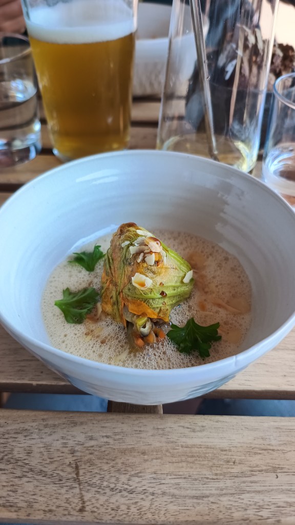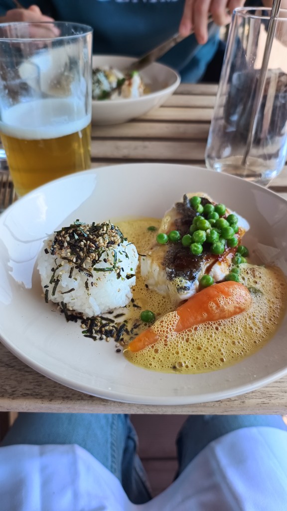 La devise du restaurant, Res nostra mare (« la mer est notre loi »), annonce la couleur. Ici, le poisson est roi, travaillé avec respect et créativité. Le midi, un menu de la criée à 30 € permet de découvrir des plats comme le maquereau ou le merlu, sublimés par des condiments bien dosés. Le soir, la carte s’élargit avec des propositions plus audacieuses : saint-pierre poché au beurre blanc au Tozasu et ail noir d’Aomori, homard bleu au teppanyaki avec émulsion de beurre noisette et algue nori, ou encore encornet de l’Alixel en bouillon dashi au miso rouge et katsuobushi.