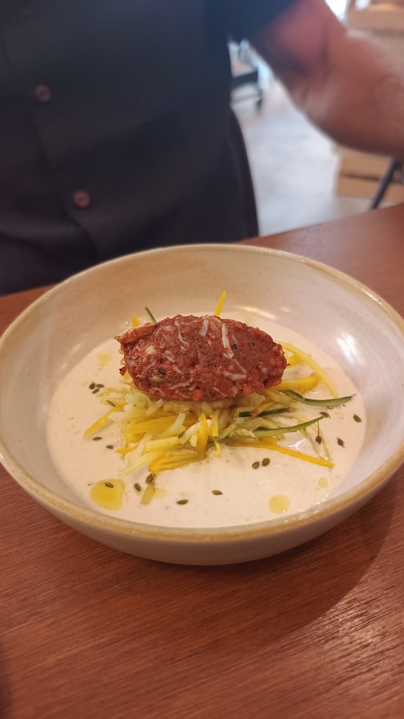 Mais ce qui distingue Bouliche, c’est sa carte. Elle change à chaque service, offrant à chaque fois deux entrées, deux plats et deux desserts – dont toujours une option végétarienne. Cette approche invente une expérience culinaire dynamique, où la créativité se laisse guider par les produits de saison et la générosité de l’inspiration du moment.