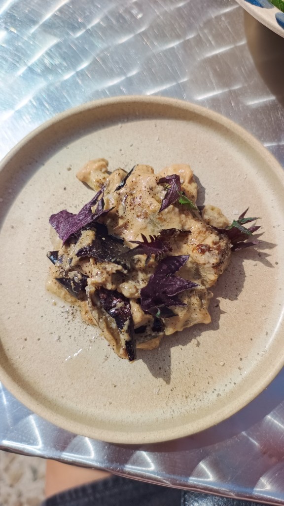 La carte change au gré des saisons et des arrivages, mais toujours avec une touche de créativité qui fait la signature de Mahaut Le Lagadec. On craque pour l’aïoli de saison avec du merlu, un oeuf et des légumes de saison, mais aussi l’aubergine shiso-cacahuète ou encore la betterave au fromage frais et huile de géranium. Tout est simple, justement cuit et subtilement assaisonné, pour conserver l’essence de chaque produit. On finit en beauté par une glace cacahuète maison à tomber.