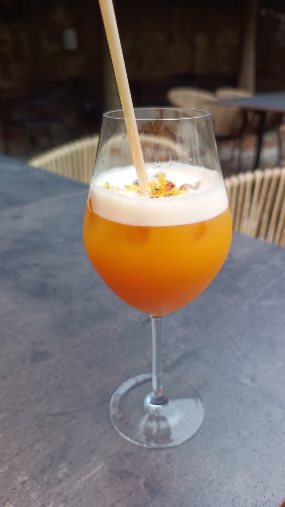 Impossible de parler de Pomme de Reinette sans évoquer le bar. Les cocktails constituent une véritable signature de la maison. Le “Pomme de Reinette”, alliance subtile de curaçao et de pomme, reflète l’esprit du lieu : audacieux, équilibré et rafraîchissant. Les créations sans alcool ne sont pas en reste, réalisées sur mesure en fonction des envies, avec la même attention portée aux saveurs et aux détails. L’art du cocktail vient ici dialoguer avec la cuisine, prolongeant l’expérience gustative jusque dans le verre.