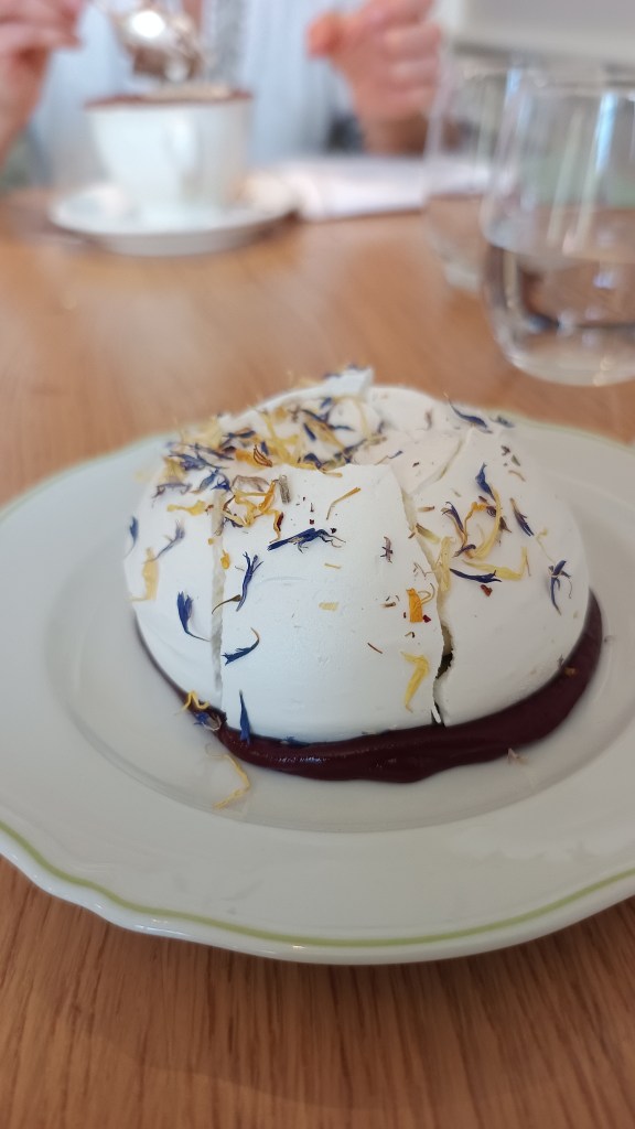 Enfin, les desserts prolongent cette impression de simplicité élégante. Le tiramisu, sans excès sucré, joue la carte du moelleux et de la légèreté, entre café subtil et crème aérienne. Quant au vacherin à la mûre et sorbet basilic, il surprend par son équilibre : la fraîcheur herbacée du basilic s’allie à l’acidité délicate du fruit rouge, dessinant une finale éclatante et désaltérante. Une manière poétique de clore un repas où chaque note, du salé au sucré, semble jouée avec justesse et bienveillance.